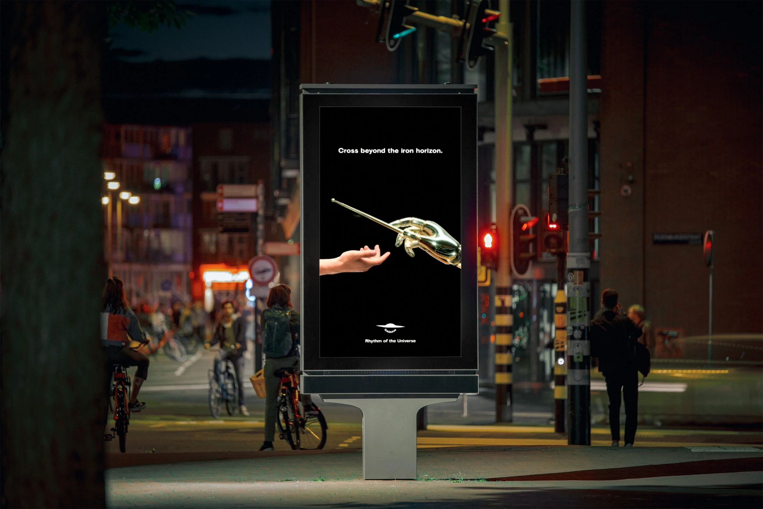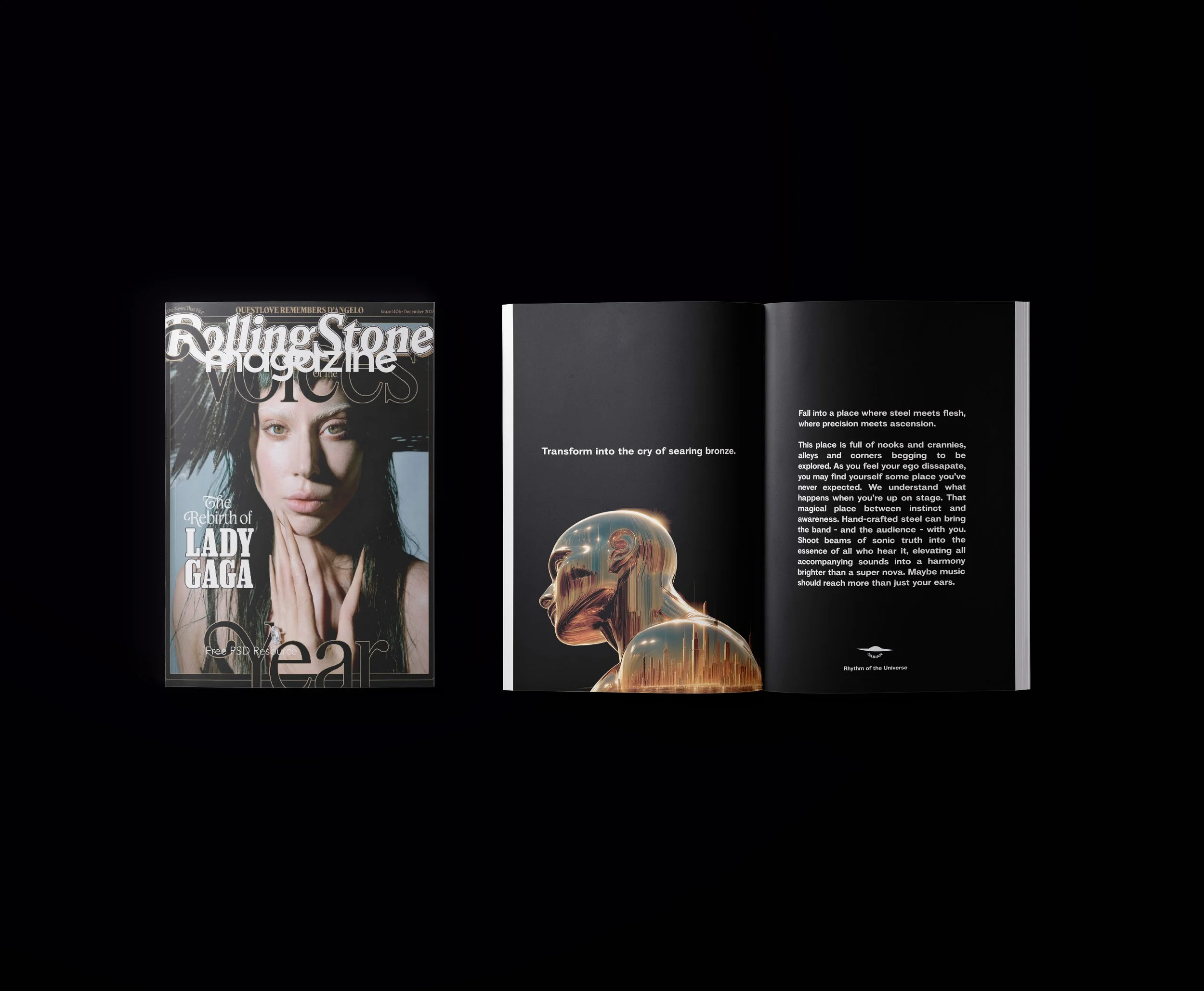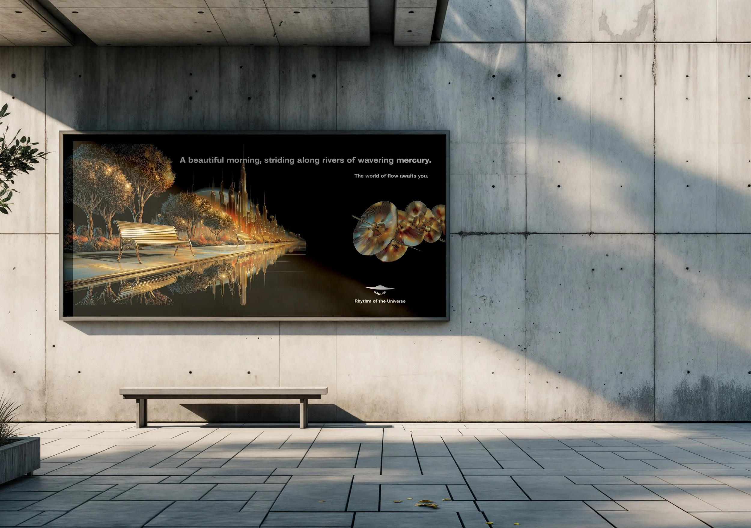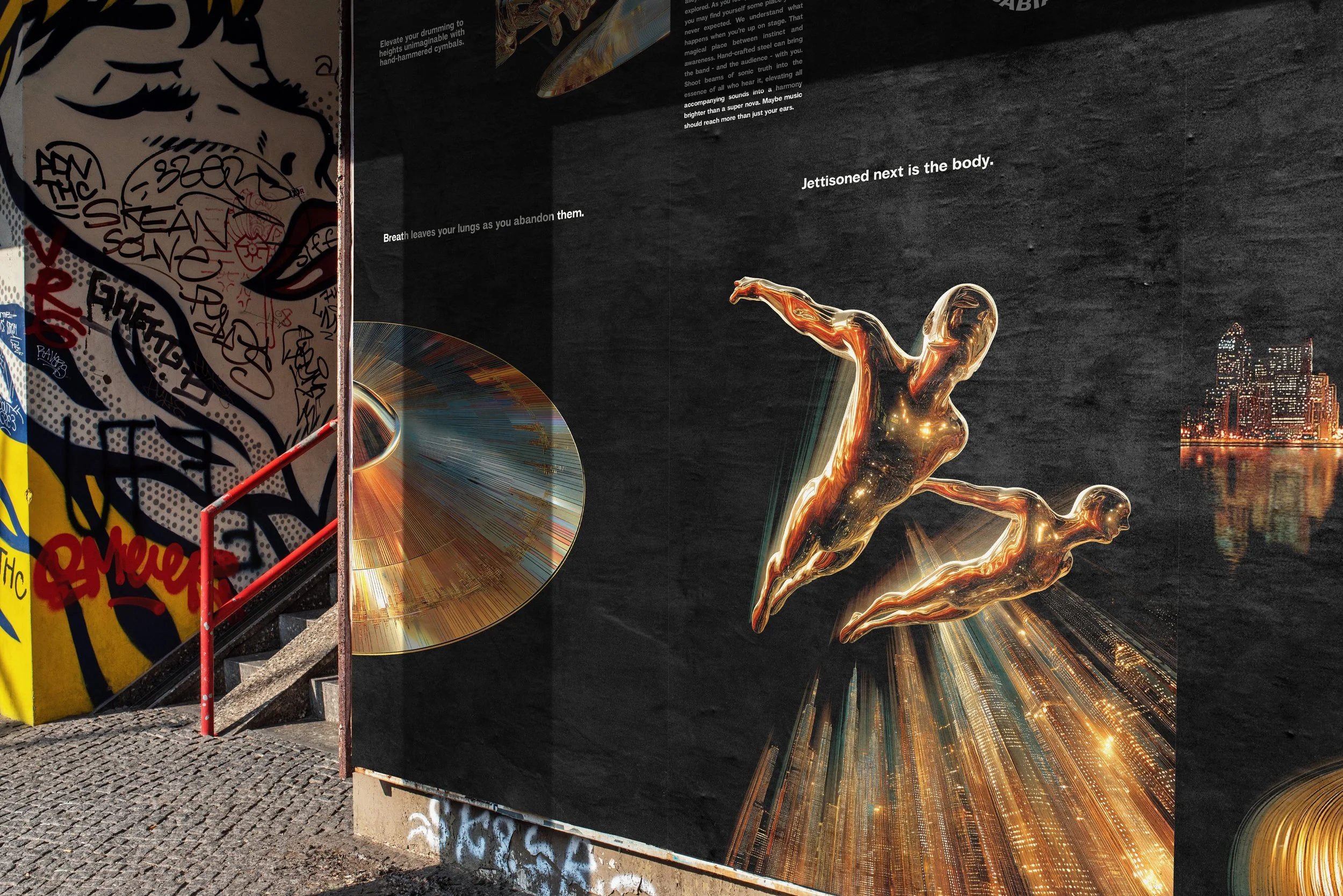 To show our appreciation for all the art forms that deliver us into that gilded state of flow, Sabian will flip the script and bring the avatars depicted in their ads out into the real world to present musical awards at events across America. Our homosabians will descend from a platform in the shape of a huge cymbal to ethereal and fantastic drumscapes. Once on the stage, they will present the award and then dive through a hole in the stage.