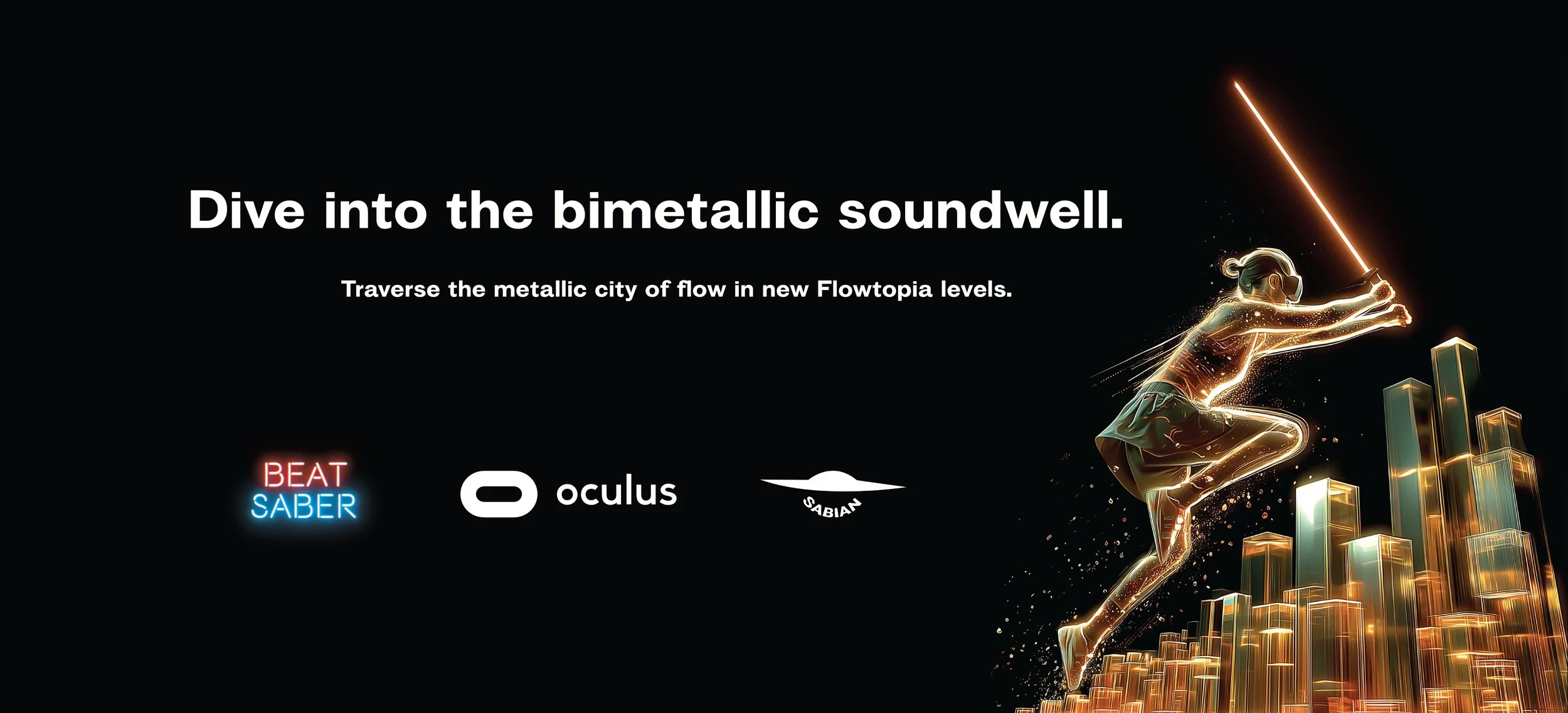 For as long as humans have been going to that mystical place of flow, we’ve never been able to actually see it. That’s why we’re partnering with Oculus Rift VR Headsets to create a series of levels in the game Beat Saber where players will actually get to fly across, dive through, and traverse the metallic city of flow. These DLC levels will be available on Steam, the Sabian website, and at participating Sabian retailers. Any purchase of Sabian products will come with a 35% discount code for the DLC.